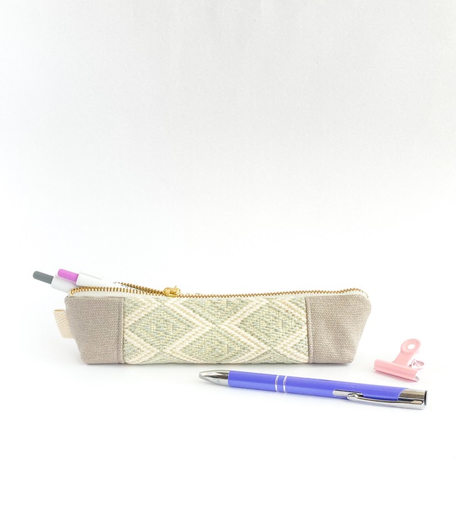 ⚫︎スリムペンケース グレー 青森県南部地方の伝統工芸「南部菱刺し」とキャンバス地を組み合わせたペンケースです。 落ち着いた色味が上品な印象を与えます。 スリムと言ってもペン類は5、6本余裕で入りますし、 細身なメガネも収納出来ます。 中にキルト綿をはさんでふっくらした仕上がりです。 内布はグレーで色味を揃えて、汚れが目立たないようにしました。 男性が持っても違和感のない色味なのでプレゼントにもオススメです。 ◻︎素材 表:コットン100% 11号帆布、ミニコングレス 裏:麻100% グレー ◻︎サイズ 縦:約5cm 横:約20.5cm マチ約3.5cm ファスナー:20cm ◻︎その他 ・南部菱刺しの地刺しという手法で刺しています。 ・商品の性質上、引っ掛けなどで糸が飛び出す事がございます。お取り扱いにご注意ください。 ・丁寧な作業を心がけていますがヨレやズレなどある場合もございます。ハンドメイド作品である事をご理解の上お買い求めください。 #ペンケース #筆入 #メガネケース #南部菱刺し #こぎん刺し #刺し子 #刺繍