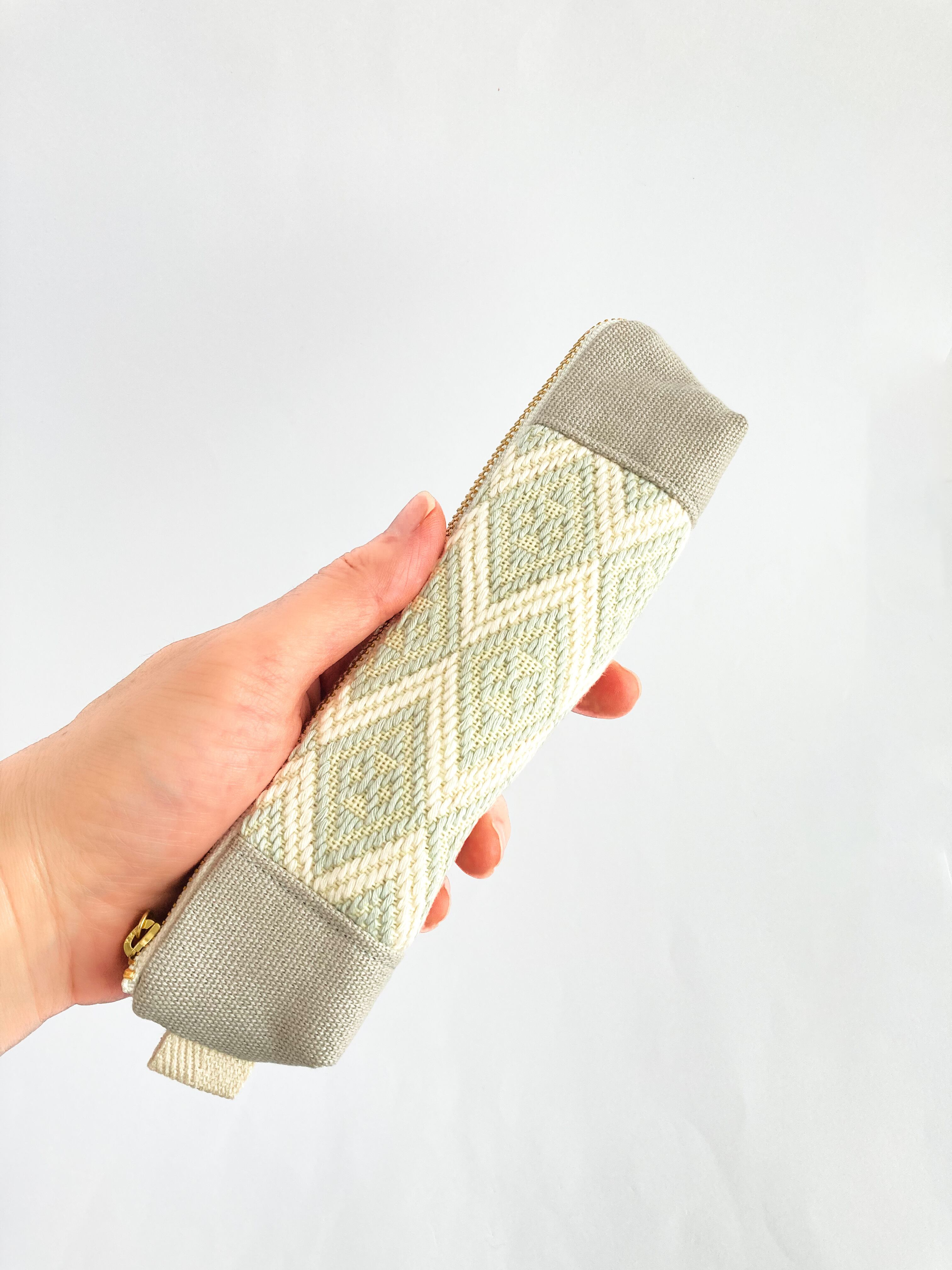 青森県南部地方の伝統工芸「南部菱刺し」とキャンバス地を組み合わせたペンケースです。
