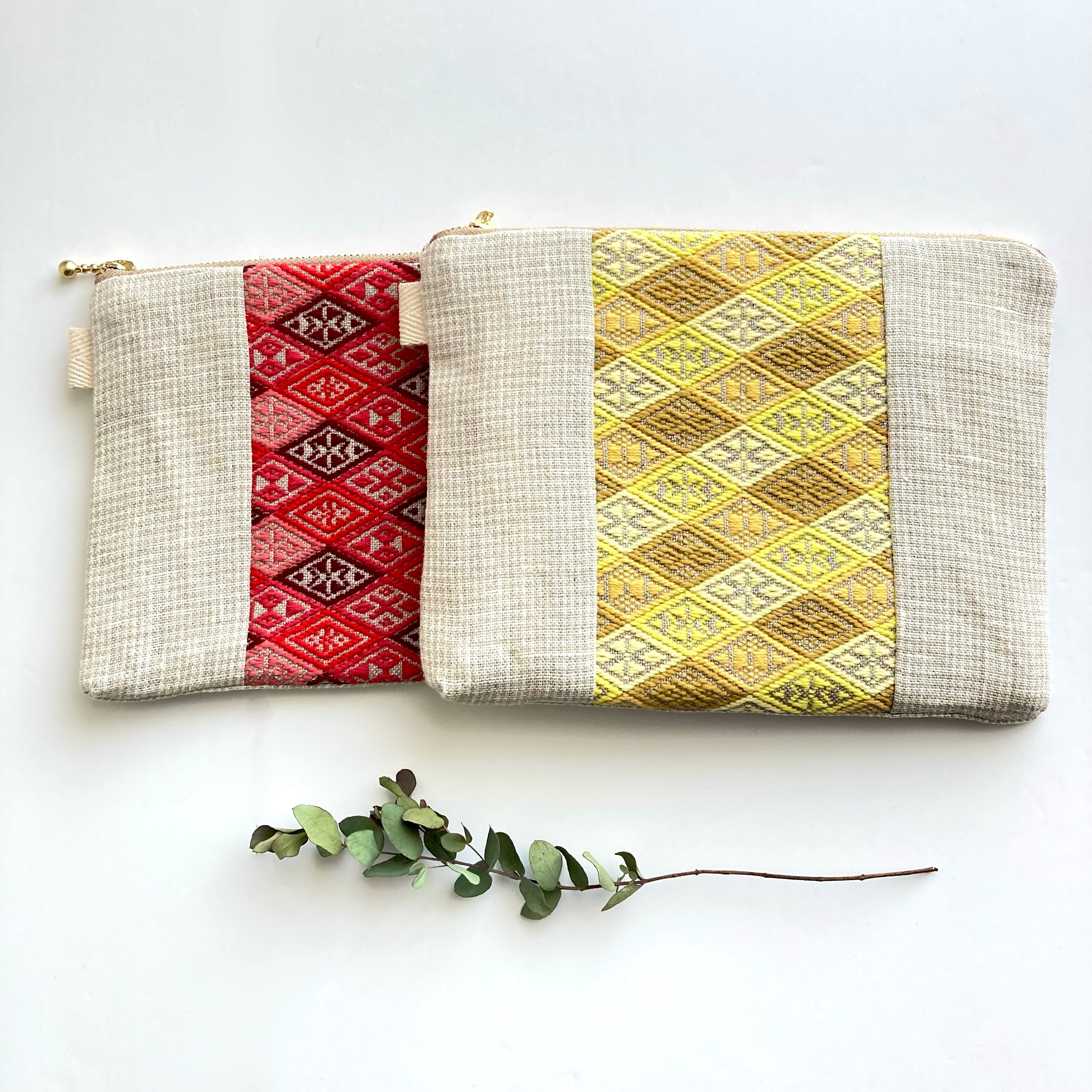 リネンの千鳥格子柄と組み合わせたファスナーポーチです。