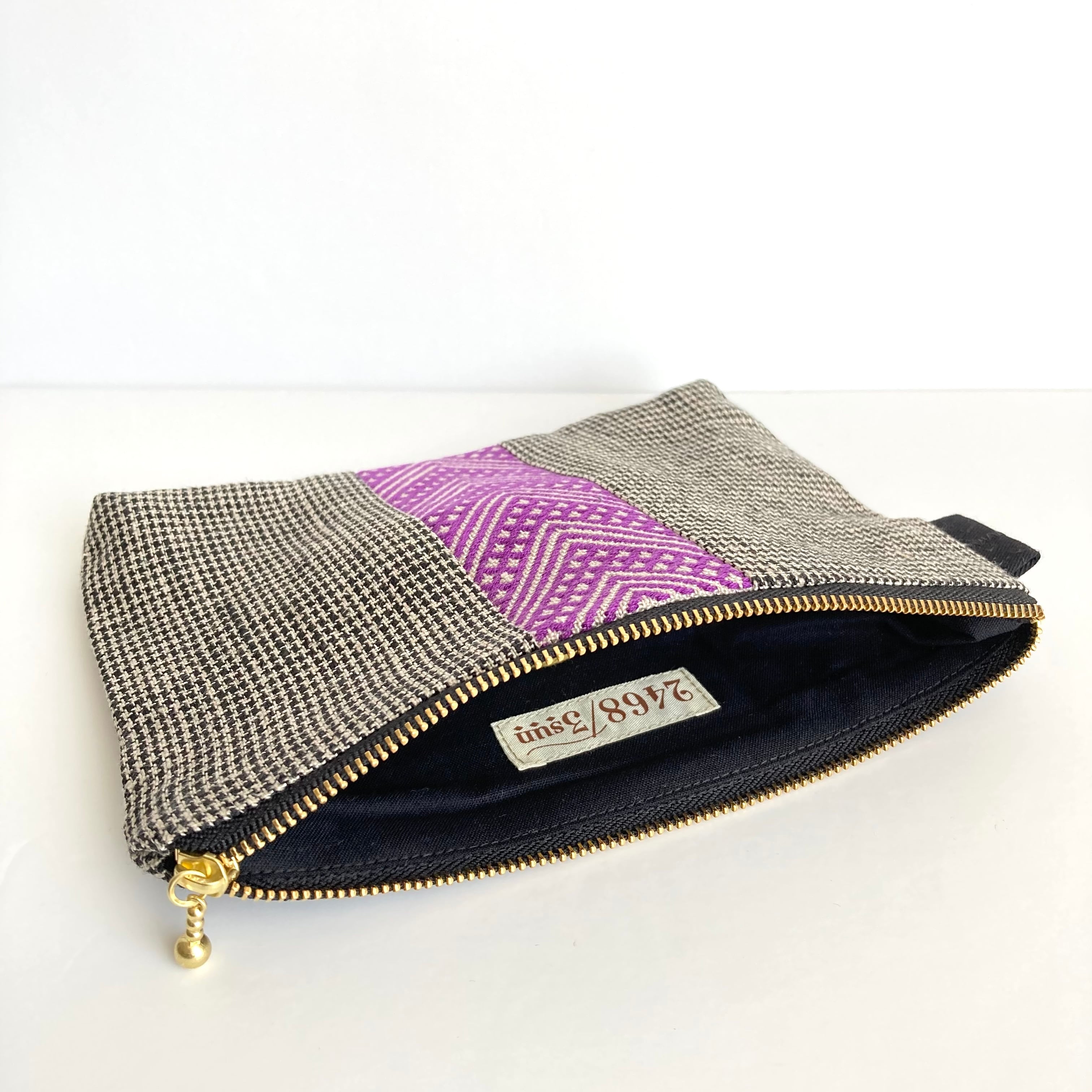 リネンの千鳥格子柄と南部菱刺しを組み合わせたファスナーポーチです。